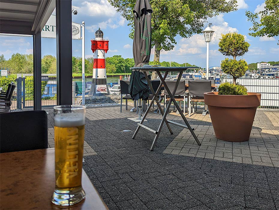 Im Yachthafen, also der Marina Rünthe selbst, spazieren Sie die schöne Promenade an den im Wind wiegenden Segelbooten und Motorbooten entlang. In unserer Marina gibt es mehrere Cafés und Restaurants: